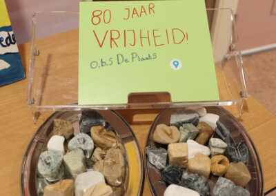 Groep 7 en 8 hebben een krans gelegd bij het monument in Abbekerk. Het beeld wat vrijheid bij de kinderen oproept is o.a. hartjes, duiven en gebroken kettingen. Dit is terug te zien in de stukjes speksteen.